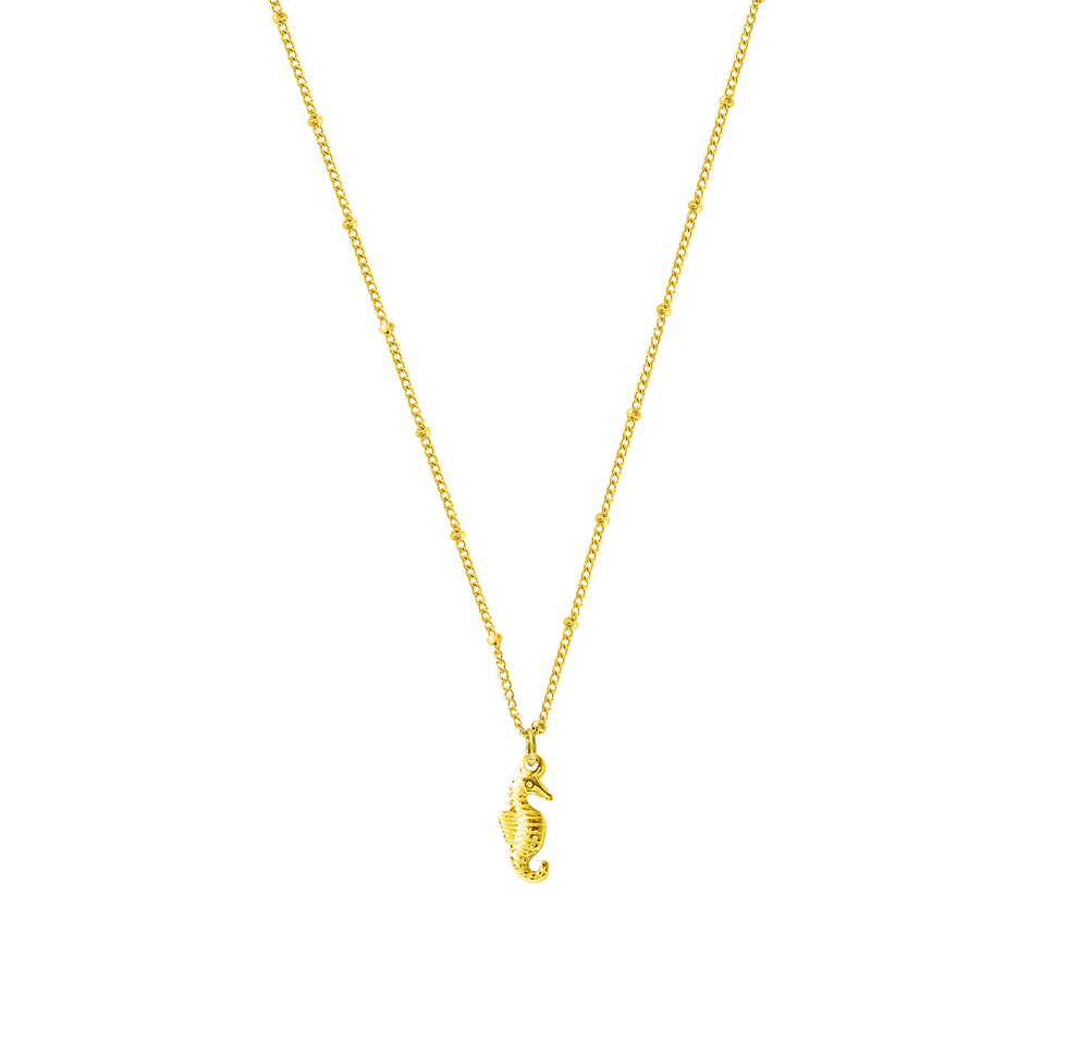 Seahorse & Ball Chain Necklace - Gold Plated Stainless Steel